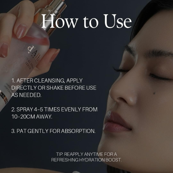 d’Alba’s White Truffle Vital Spray Serum provides instant SOS relief to stressed skin, soothing irritation while delivering a refreshing burst of hydration.