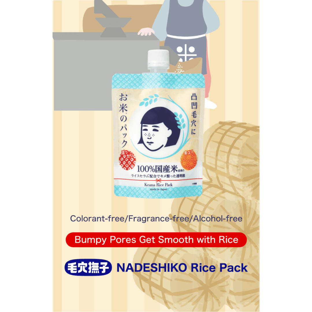 Nadeshiko Keana Rice Pack, wash-off mask moisturises dry and rough skin. It features a nourishing essence made with 100% organic rice from Japan to restore the skin barrier. Apply a generous amount to the face, leave on for five minutes, and then rinse off the product to achieve smooth and supple skin.